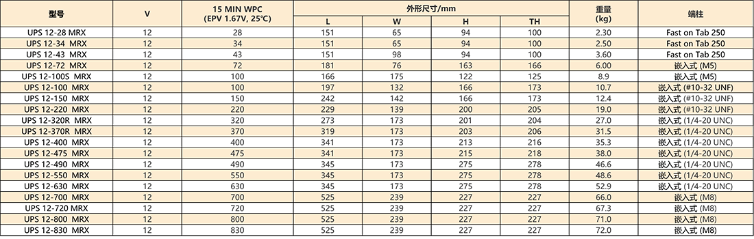 ● 具有一致的再复合设计,防止热失控,防止气体生成及阻燃的特点,符合Bellcore 4228